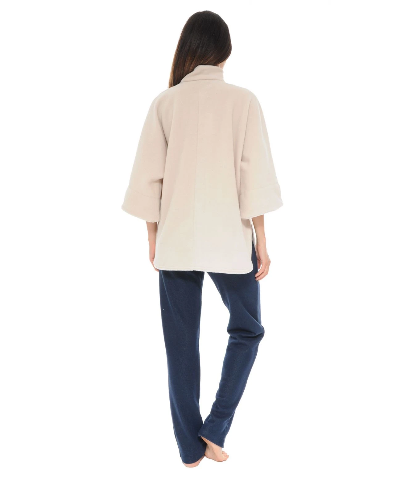 Cette cape est confectionnée dans un tissu doux et chaud beige en jersey molleton 100% polyester pour vous apporter une chaleur agréable.