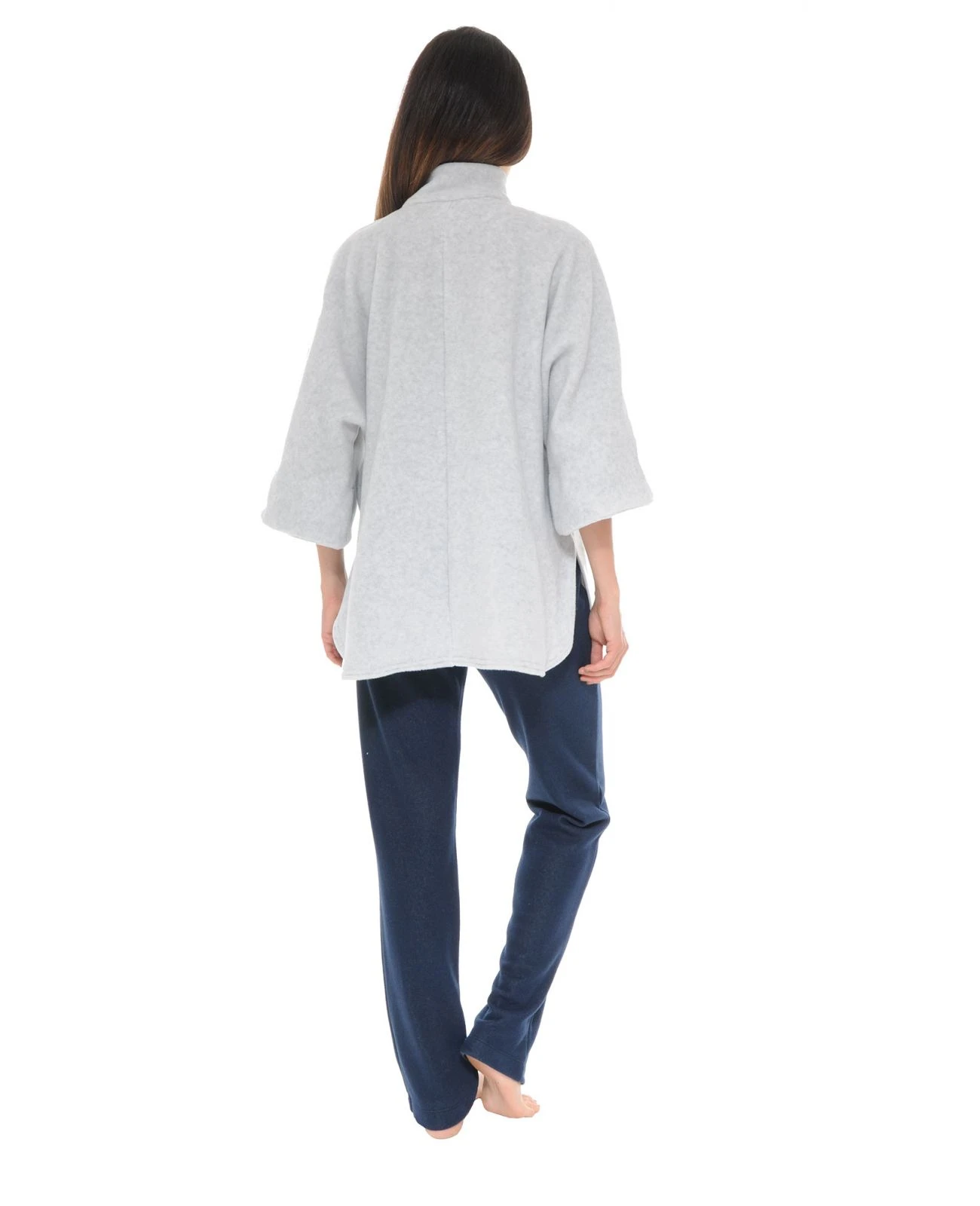 Cette cape est confectionnée dans un tissu doux et chaud gris clair en jersey molleton 100% polyester pour vous apporter une chaleur agréable.