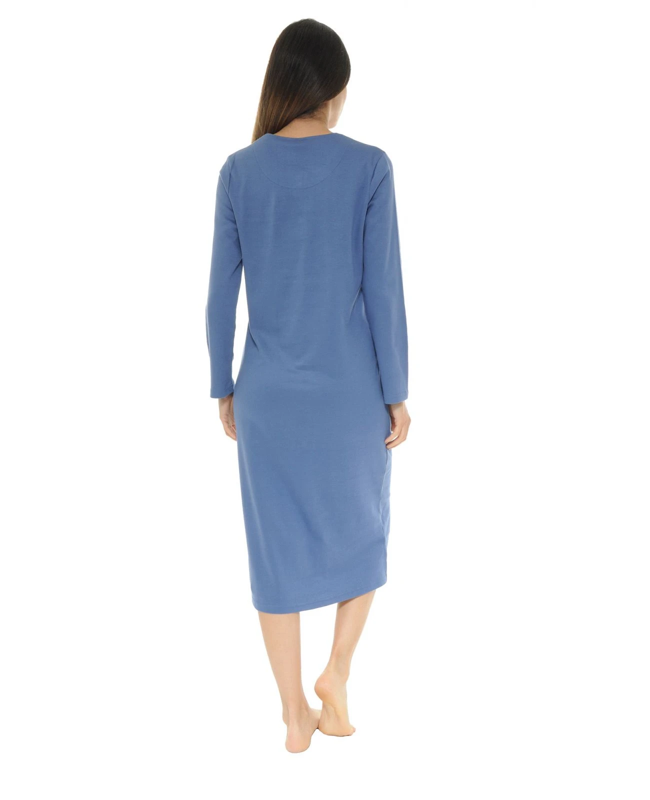 Chemise de nuit dotée d’une couleur bleu raf à l’image des temps hivernaux de la saison, elle comporte un col tunisien avec ouverture 3 boutons afin de vous garantir un confort maximal.