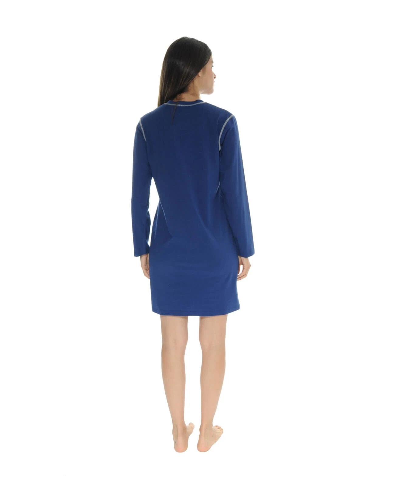 Un coloris bleu cobalt chaud et lumineux. Chemise de nuit manches longues, encolure ronde avec deux boutons fantaisies. La coupe est droite, confortable et pour la touche de féminité , on souligne les finitions comme les surpiqûres blanches et la magnifique sérigraphie de papillon qui donne du charme au modèle. Une robe en maille jersey de 90cm, douce et souple pour une plus grande liberté de mouvements. La mannequin mesure 1m70 et porte une taille S – Livraison rapide en 48 hrs et toujours les retours gratuits (France métropolitaine)