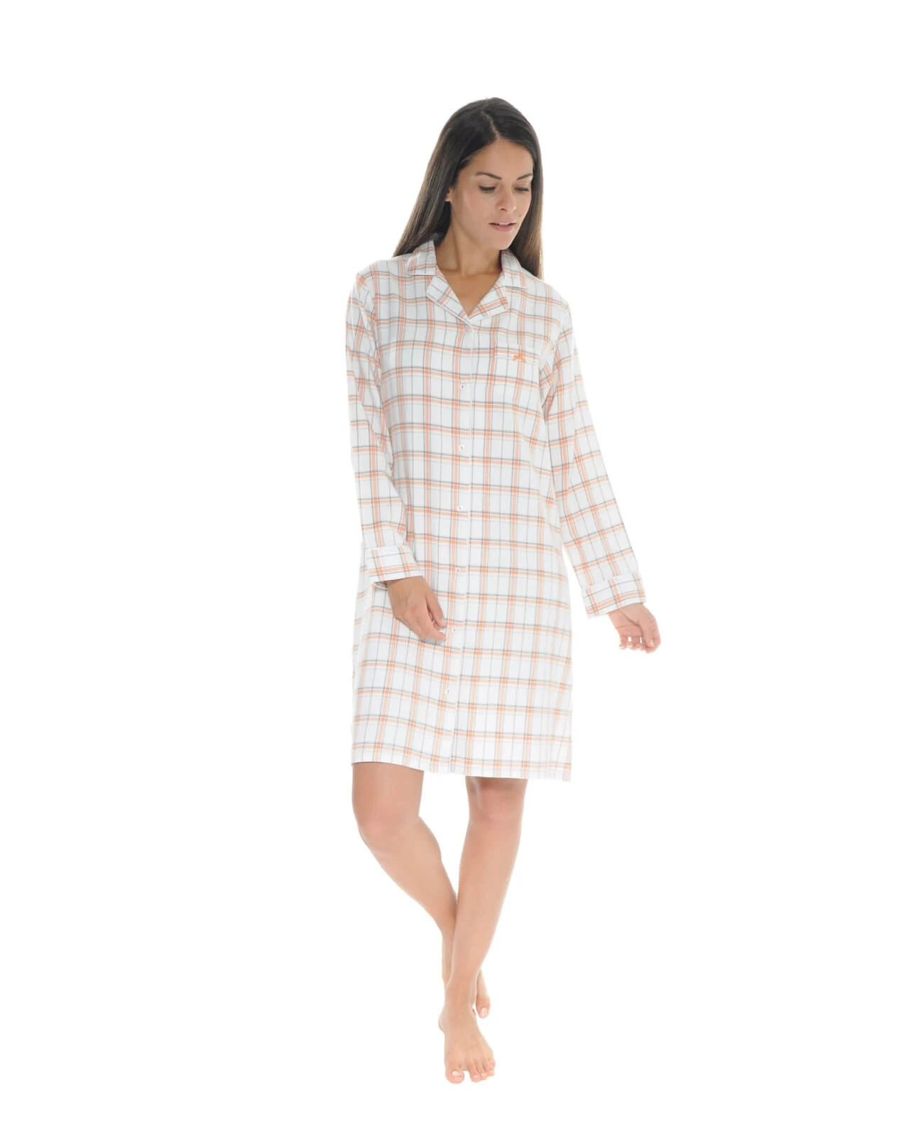 Liquette, col chemisier, manches longues, entièrement boutonnĂ©e. Une forme classique, intemporelle en tissu chaĂ®ne et trame 100% Coton Ă carreaux, un Ă©cru naturel mixĂ© Ă un tendre saumon pour un style très fĂ©minin. Des finitions Ă©lĂ©gantes et soignĂ©es, le col est sublimĂ© par une finition galon et la poche poitrine raccordĂ©e dans la rayure est mise en valeur par un noeud fantaisie. Une chemise de nuit de 95cm pour se sentir belle et libre de ses mouvements, facile Ă enfiler et agrĂ©able Ă porter avec ses fentes de cĂ´tĂ©. La mannequin mesure 1m70 et porte une taille S – Livraison rapide en 48 hrs et toujours les retours gratuits (France mĂ©tropolitaine)