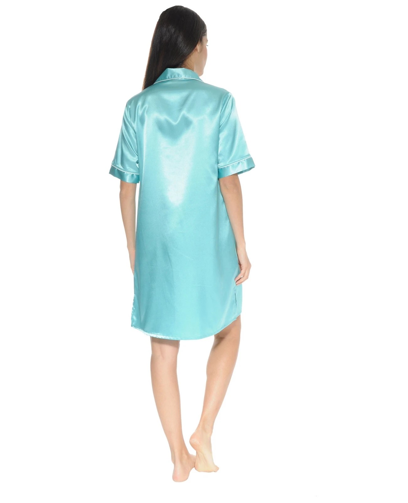 Robe chemise en satin coupée dans un tissu soyeux, lisse et brillant.