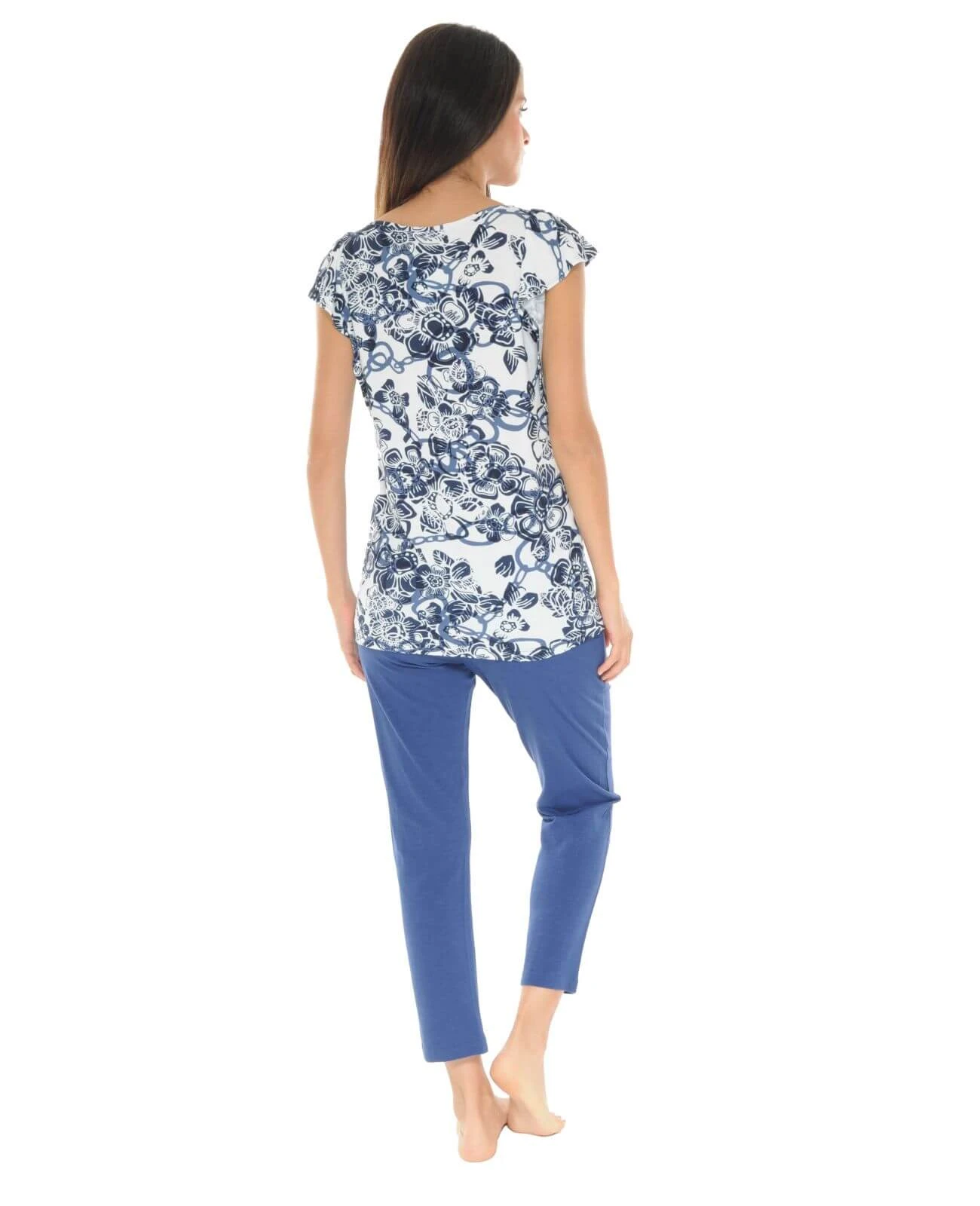 Laissez-vous séduire par notre t-shirt VALERY et son bel imprimé fleuri bleu marine qui rappellera les fleurs de printemps !