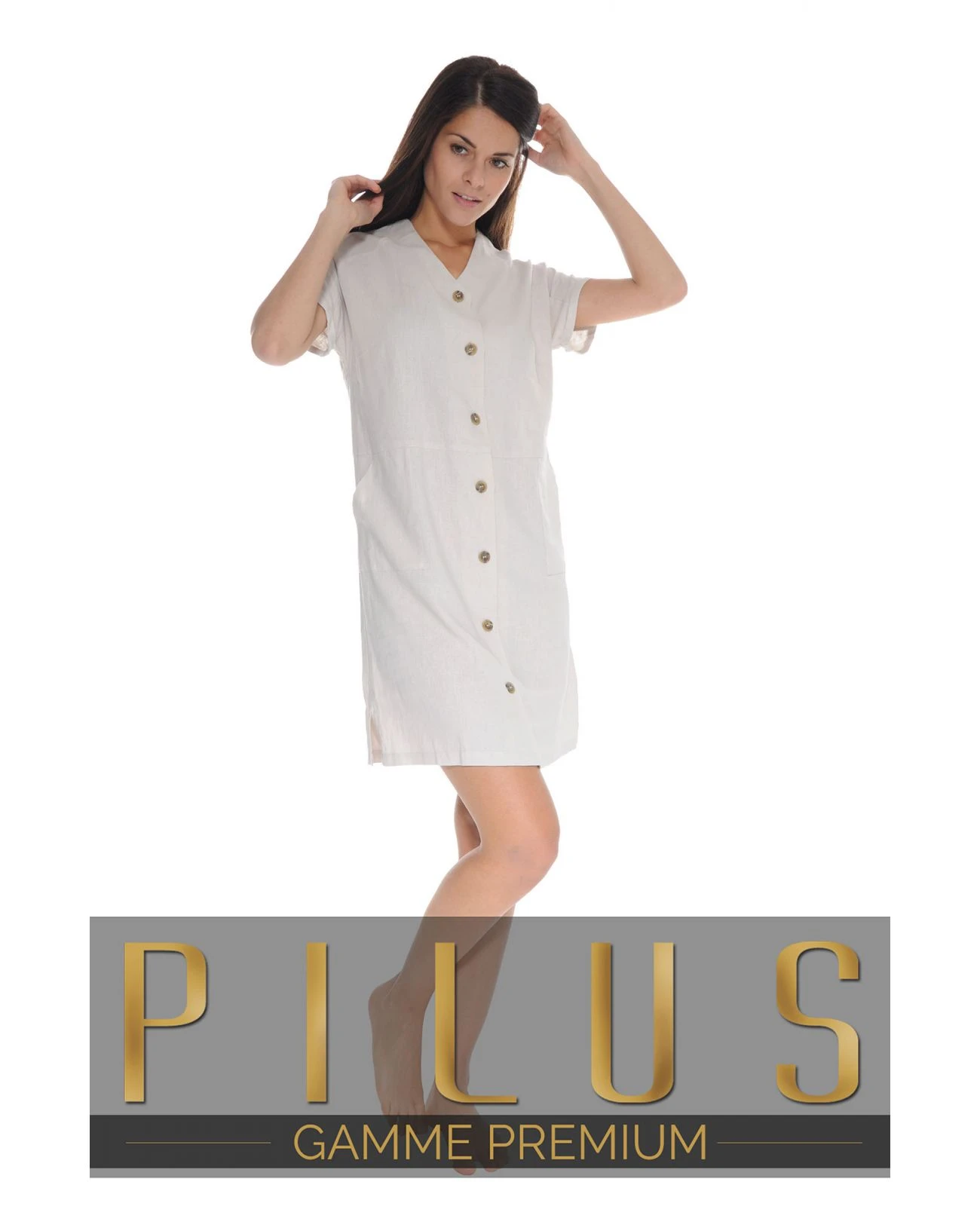 Une robe chemise aux couleurs de l’été, un beige naturel, imaginée sur une popeline lin viscose, une fibre végétale souple, antibactérienne et ultra confort.
