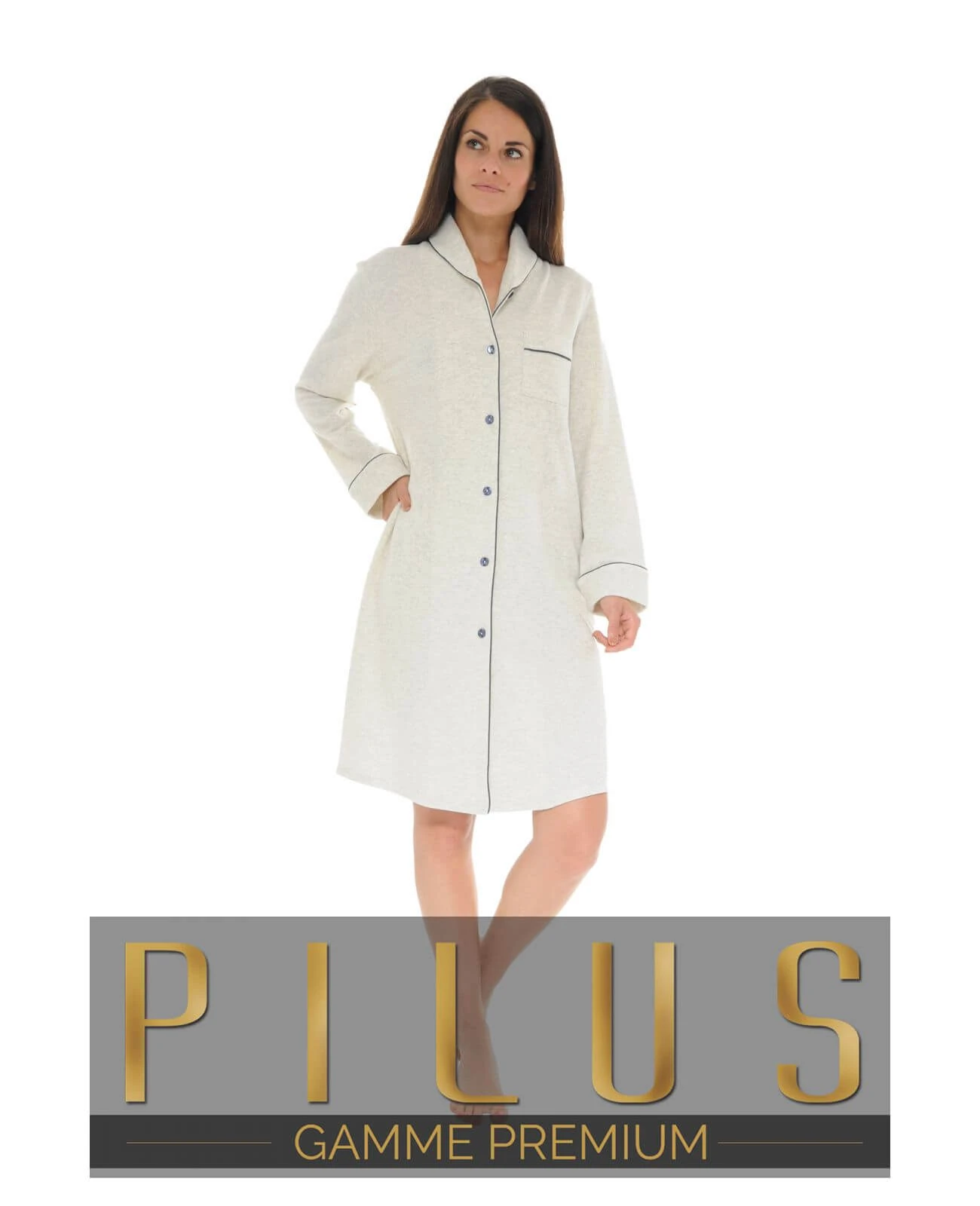 Entièrement boutonnée de 6 boutons, et parée d’une poche poitrine ton sur ton et de son liseré bleu marine faisant ressortir sa couleur écru, cette chemise de nuit au style épuré est faite pour vous !