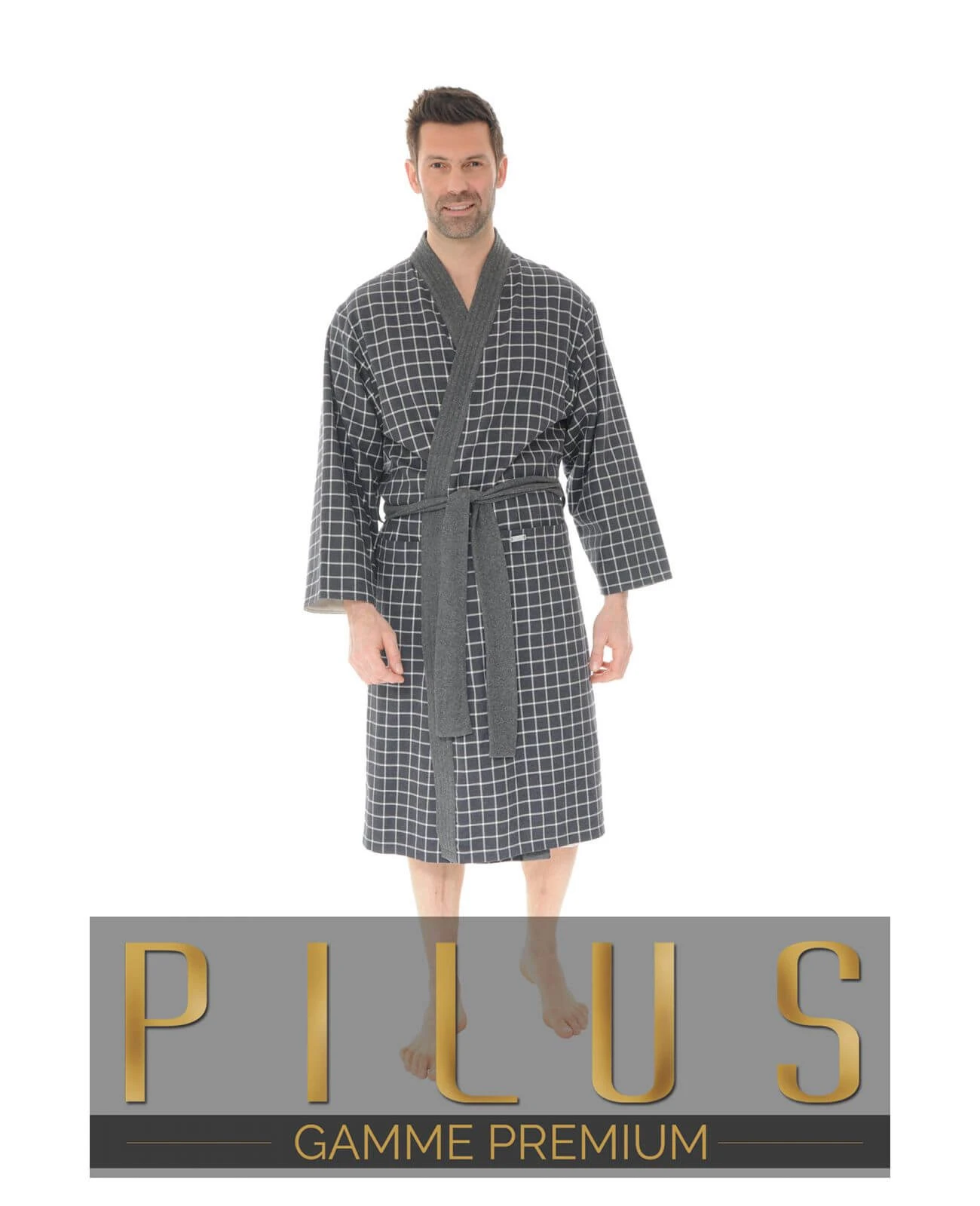 Le tissu à carreaux en popeline 100% coton et la doublure en jersey molleton de cette robe de chambre vous garantie un confort et un bien-être à coup sûr !
