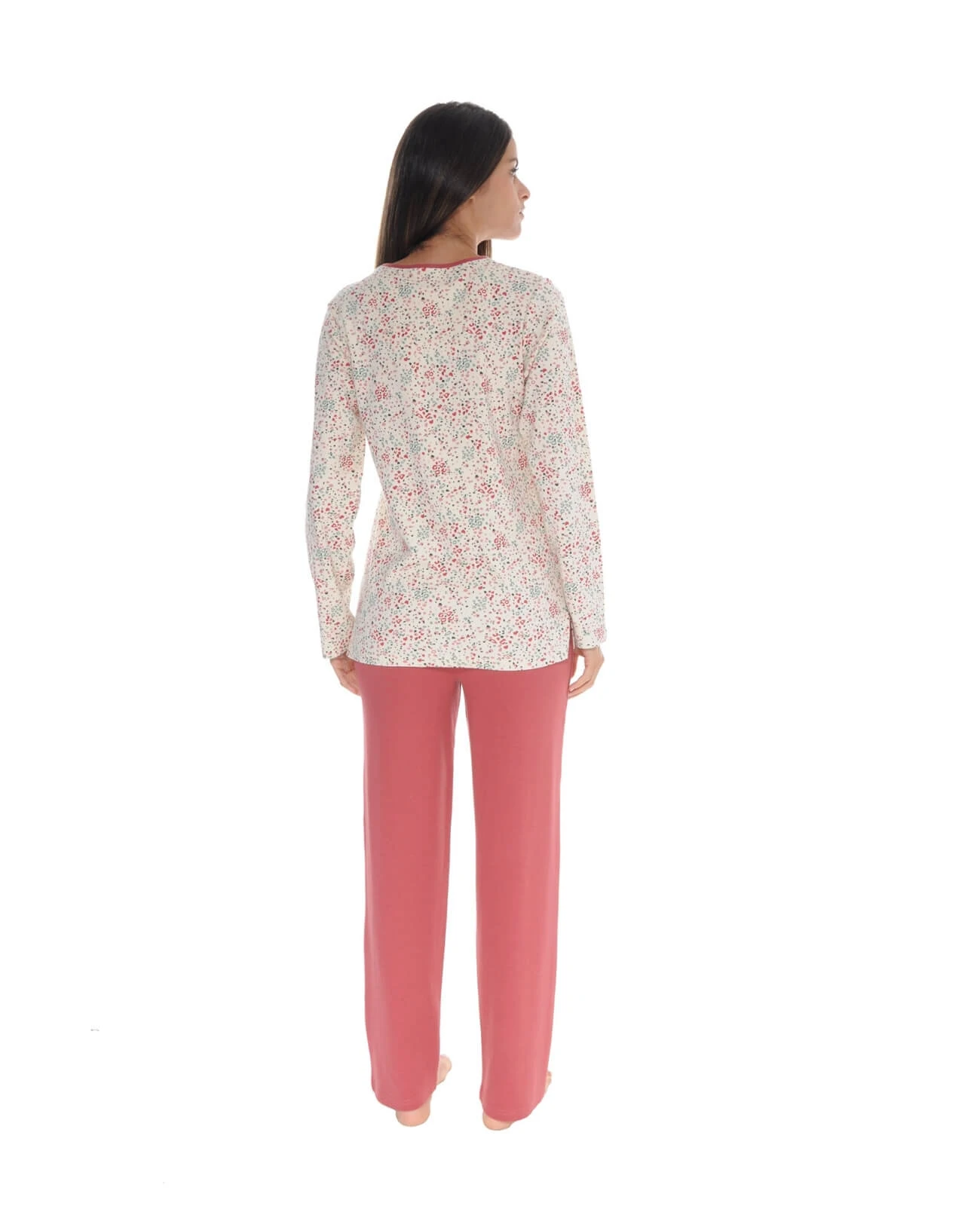 Toujours très apprécié et très mode l imprimé animalier est revisité dans des tons doux et colorés de roses, groseilles et amandes. T-shirt manches longues, imprimé sur fond écru en maille jersey interlock, 100% coton qui vous garantira chaleur et confort. Vous apprécierez la délicatesse des finitions : l encolure ronde sublimée par un empiècement en forme triangle, la poche poitrine ton sur ton et les fentes de côté. Pantalon droit en maille, uni groseille, confortable avec sa taille élastiquée. Restez au chaud cet hiver avec cet ensemble tonique et romantique. La mannequin mesure 1m70 et porte une taille S – Livraison rapide en 48 hrs et toujours les retours gratuits (France métropolitaine)