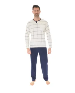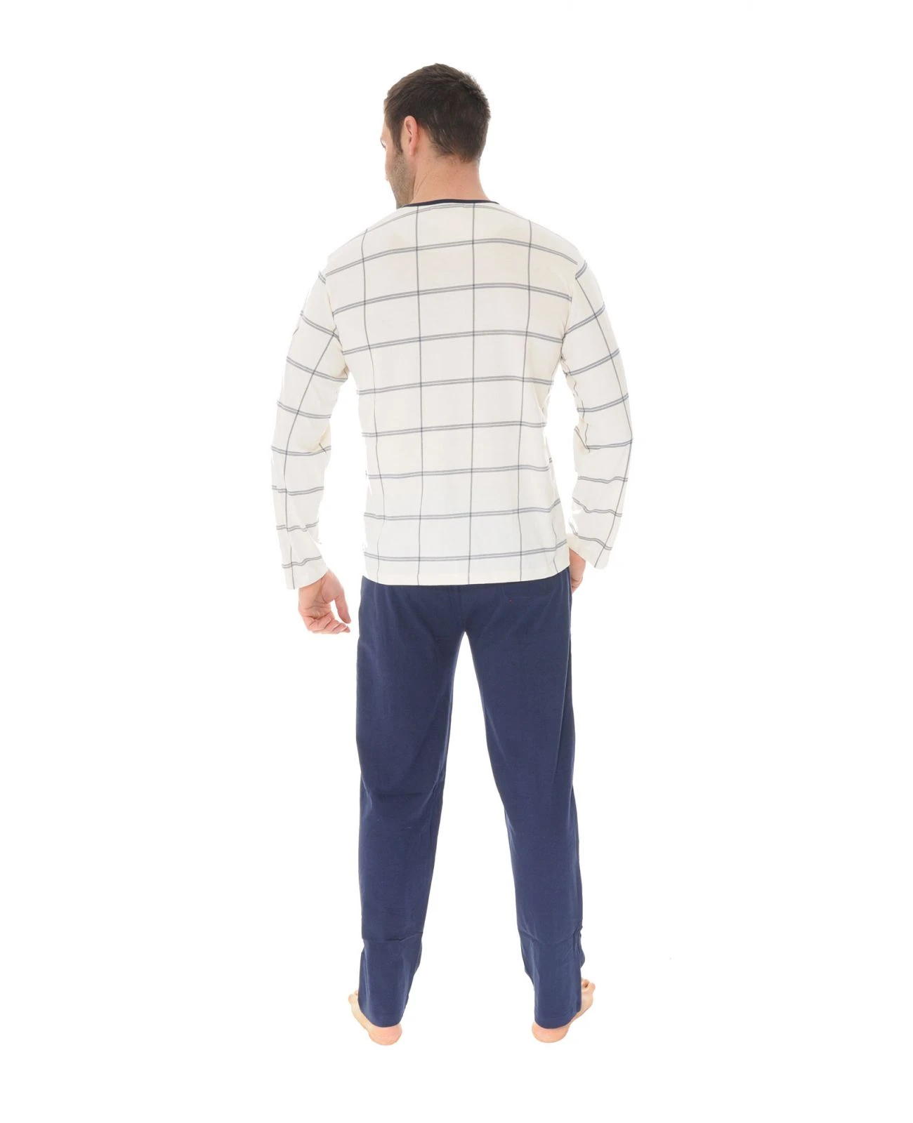Dans un esprit casual chic aux tonalités lumineuses beiges et marines , ce pyjama en maille de coton vous apportera douceur et confort.