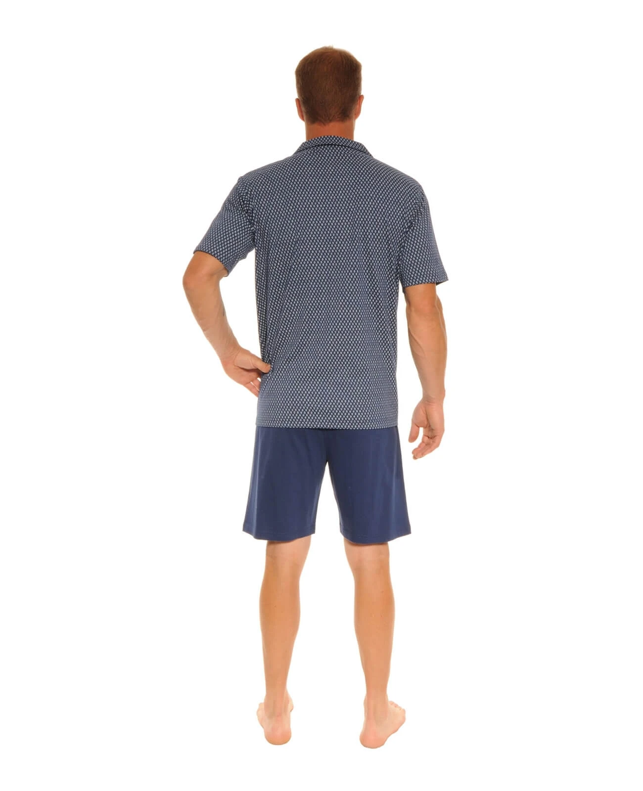 Un pyjama court confortable et pratique qui se porte au printemps et en été. Veste forme chemise manches courtes, entièrement boutonné en maille jersey de pur coton souple et légère déclinée dans un imprimé géométrique bleu et agrémenté de deux poches plaquées sur le devant. Bermuda à la taille élastiquée uni bleu. L excellente qualité de la maille jersey 100% coton vous garantira douceur et bien être, un confort indispensable pour des nuits douces et reposantes. Cet article est confortablement coupé ! Ne prenez donc pas une taille au dessus. Le mannequin mesure 1m80 et porte une taille 3 – Livraison rapide en 48 hrs et toujours les retours gratuits (France métropolitaine)