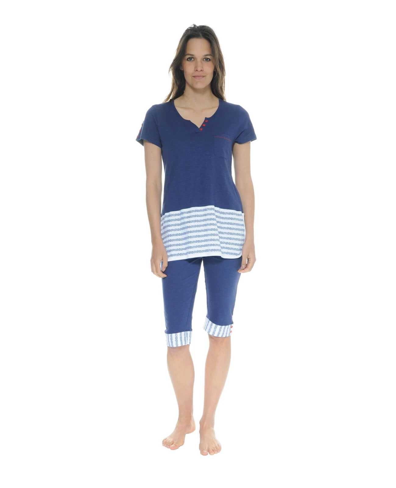 Laissez-vous sĂ©duire par cette pièce iconique, la marinière, revisitĂ©e par notre bureau de style et associĂ©e Ă un bermuda marine de 62cm. Un ensemble original. Haut 100% coton uni marine, col rond terminĂ© par une fente et 3 boutons rouges fantaisies, 3 boutons rouges que l’on retrouve sur les manches courtes et 1 poche poitrine ton sur ton. Le bas de la marinière arrondi est rayĂ© marine. Bermuda de 62cm Ă la ceinture Ă©lastiquĂ©e avec cordon de serrage et rappel du tissu rayĂ© sur le bas du bermuda agrĂ©mentĂ© de 2 boutons rouges La mannequin mesure 1m70 et porte une taille S – Livraison rapide en 48 hrs et toujours les retours gratuits (France mĂ©tropolitaine)