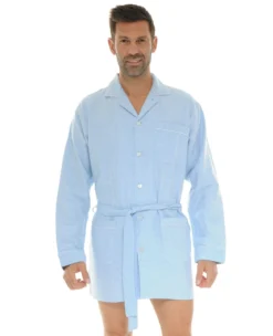 Veste de nuit homme en tissu traditionel flanelle de coton avec ceinture . Veste col chemise, manches longues, six boutons, poche poitrine, deux poches plaquées en bas du devant, biais au revers col, manches et poches. Article en 100% coton de flanelle, pilou pilou, chaud et agréable au porter. Cet article est confortablement coupé ! Ne prenez donc pas une taille au dessus. Le mannequin mesure 1m80 et porte une taille 3 – Livraison rapide en 48 hrs et toujours les retours gratuits (France métropolitaine)