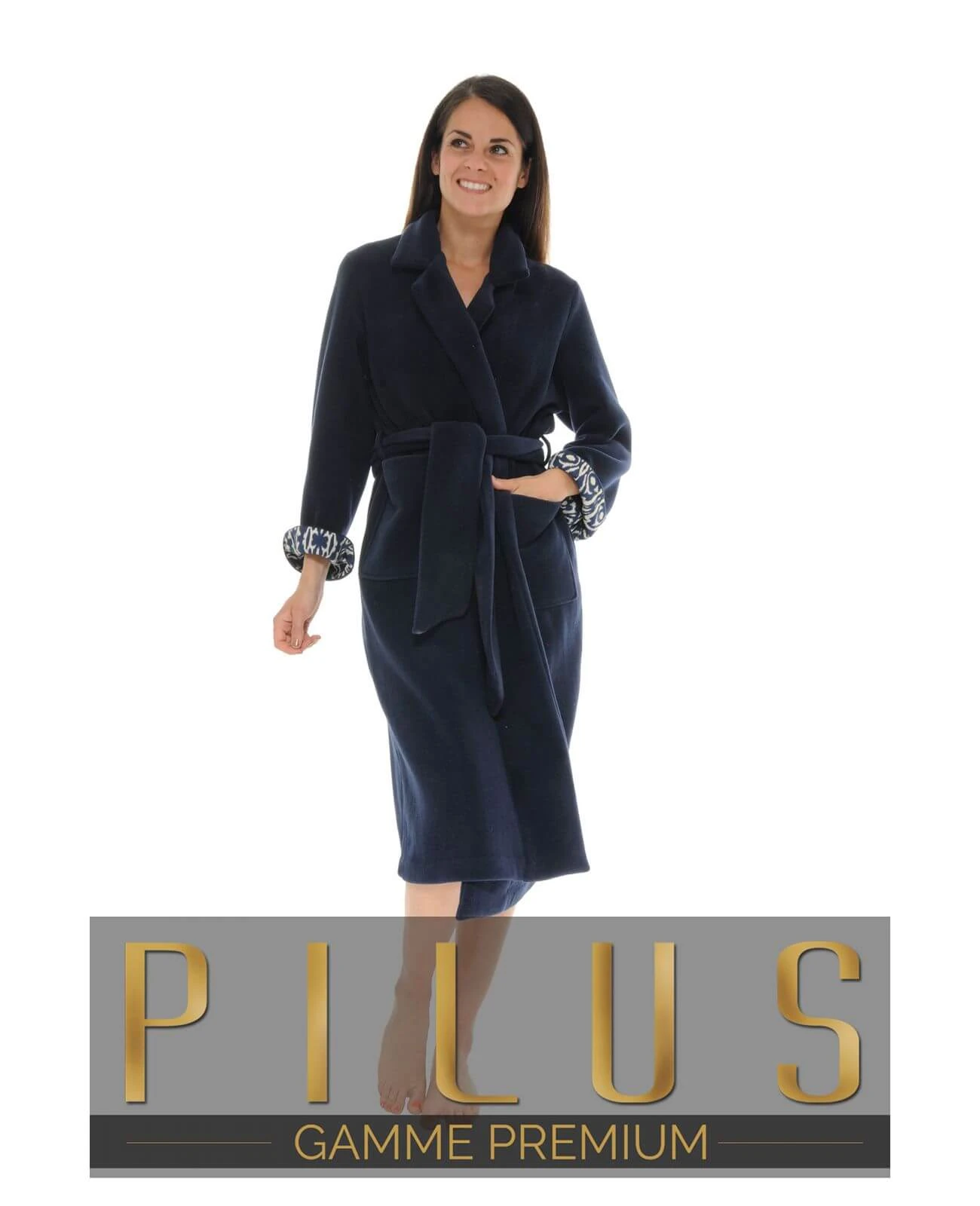 Adoptez un style décontracté et chic en même temps avec cette robe de chambre chaude bleu marine en molleton polaire 100% polyester.