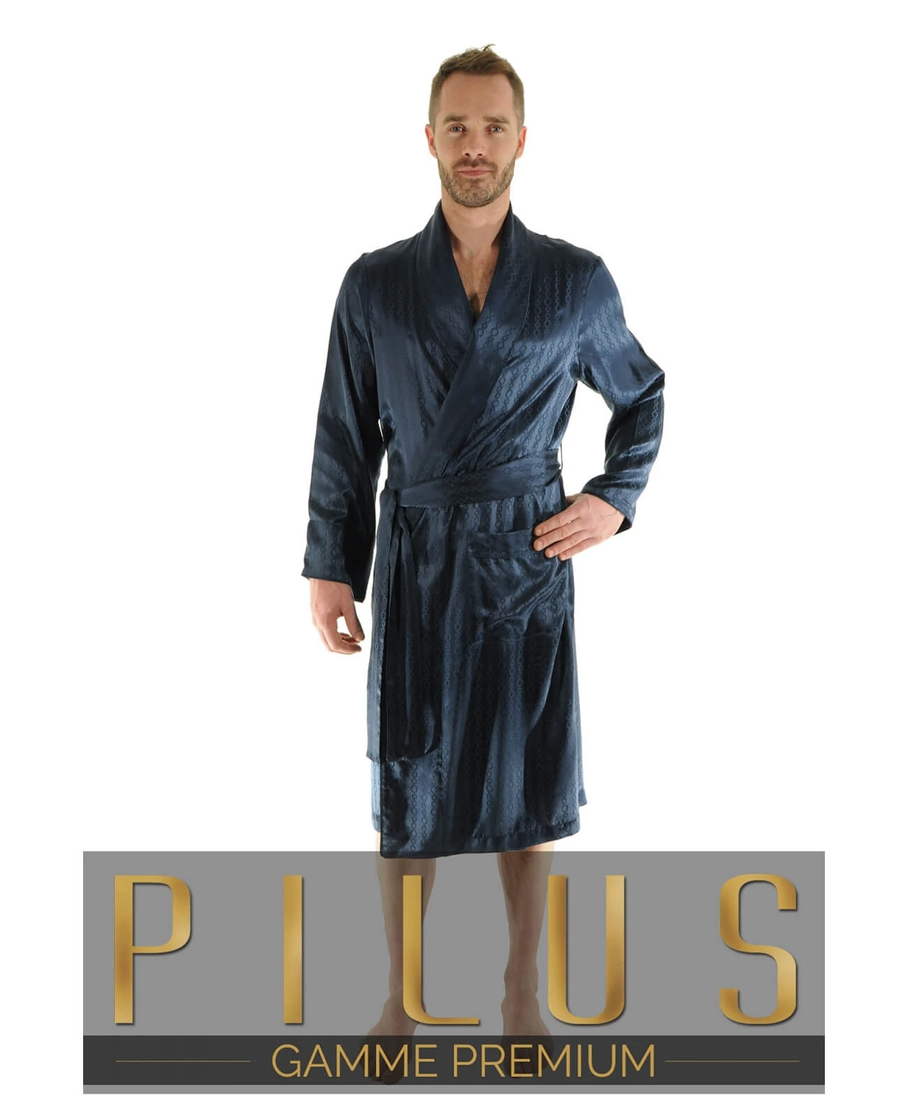 La marque PILUS est présente depuis plus de vingt ans sur les cinq continents dans les plus belles boutiques. Les belles matières, les finitions raffinées et les coupes impeccables, caractérisent cette gamme Premium. ! Robe de chambre col châle en soie naturelle coloris bleu nuit avec ceinture. La soie, une matière légère, douce, agréable à toucher et à porter . Cette robe de chambre de luxe , au tombé impeccable vous comblera et vous apportera fraîcheur en été et chaleur en hiver. Robe de chambre col châle de 120cm, parfaitement ajustée avec deux grandes poches plaquées.