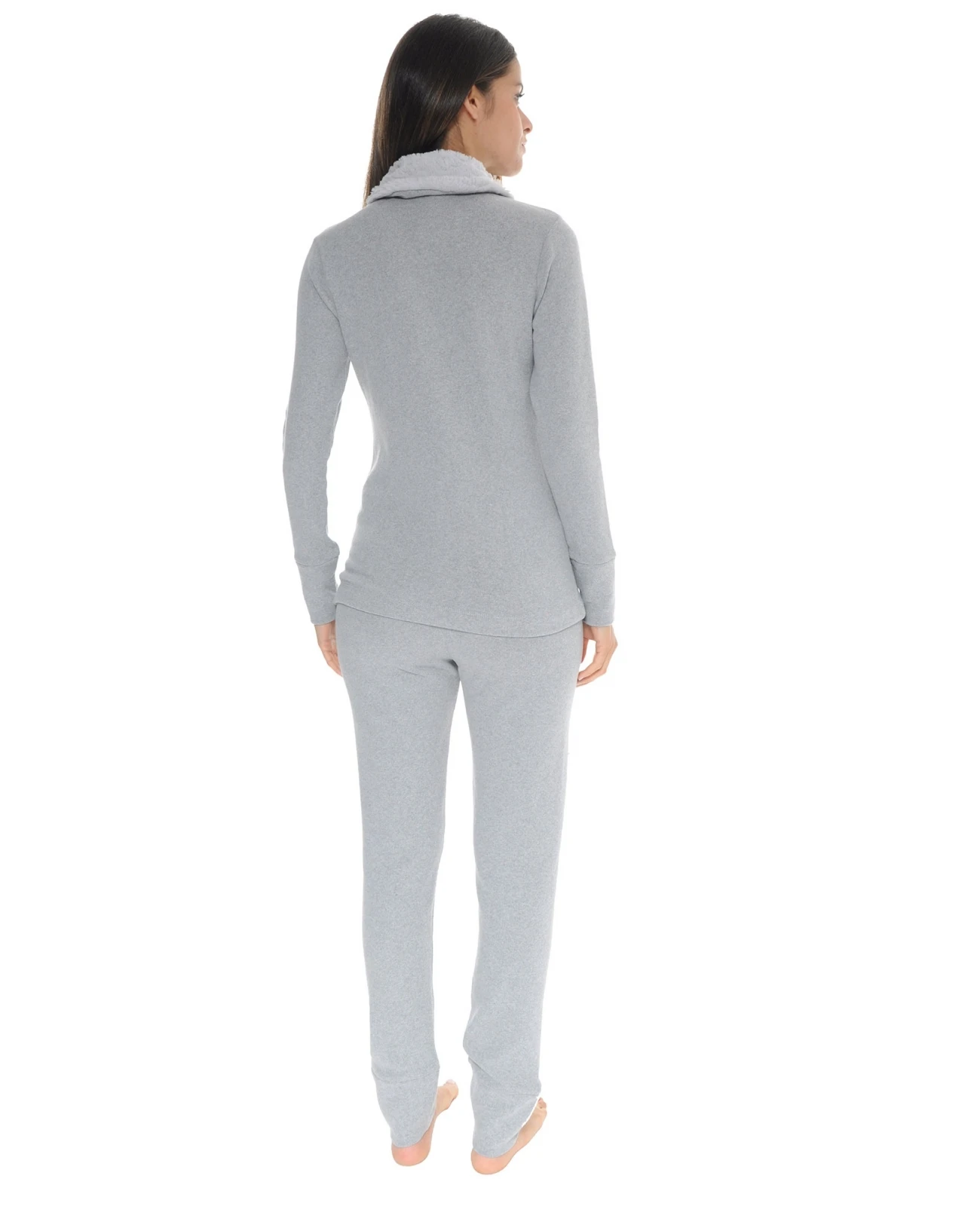 La marque PILUS est présente depuis plus de vingt ans sur les cinq continents dans les plus belles boutiques. Les belles matières, les finitions raffinées et les coupes impeccables, caractérisent cette gamme Premium. ! Ambiance cocooning avec cette tenue d intérieur au délicat mélange de matières chaleureuses et nobles. La maille tricot du gilet zippé est sublimée par un col en fourrure et deux grandes poches dans lesquelles on a hâte dy glisser les mains. Pantalon droit en maille tricot à la taille élastiquée. Un modèle unique, plein de charme dans un ton de gris , idéal pour tous vos moments de détente.