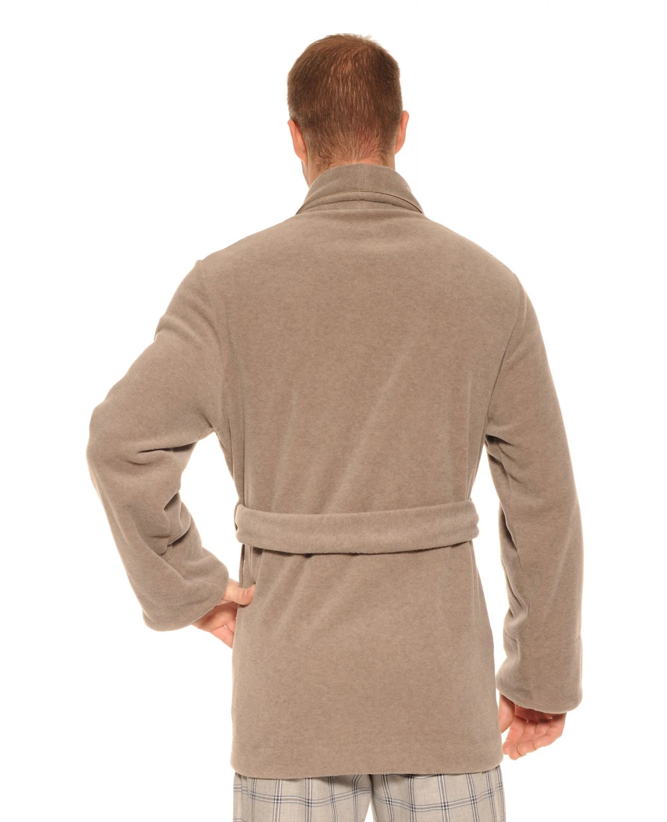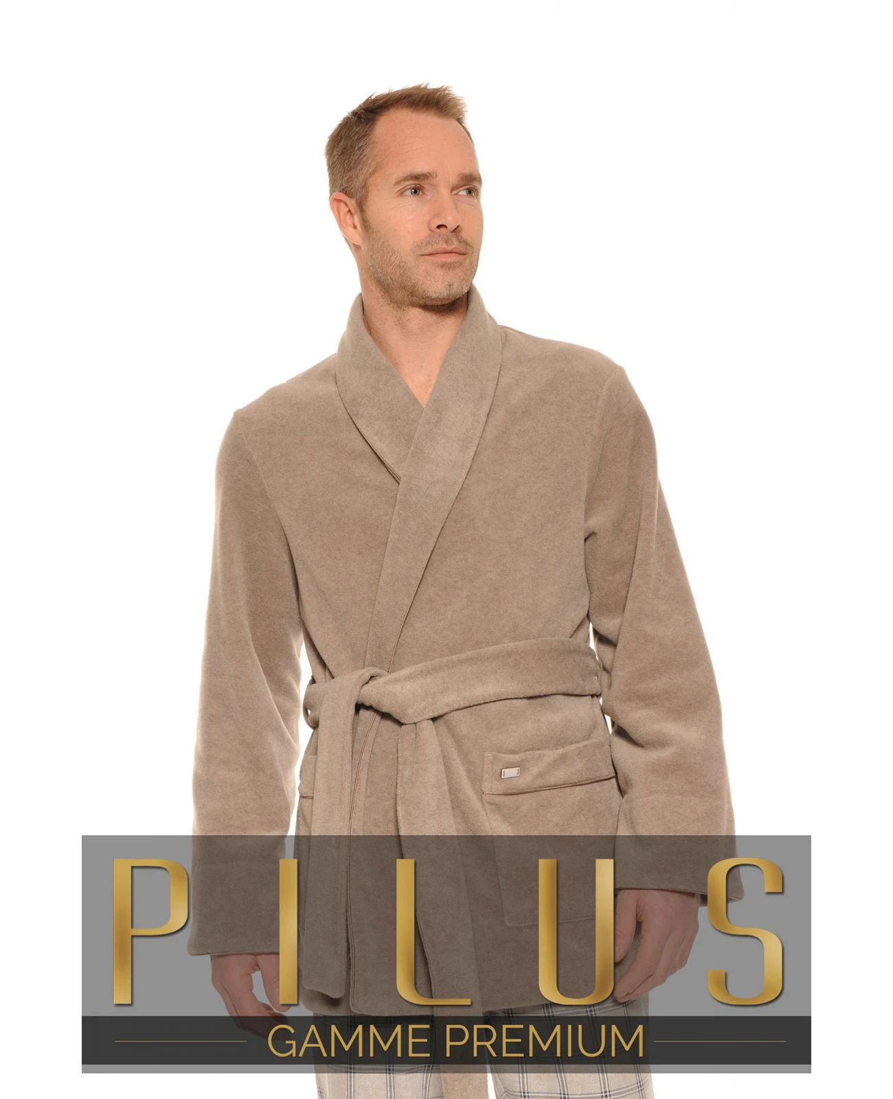 Pour rester élégant chez soi et profiter de la chaleur du polaire, choisissez cette veste d’intérieur croisée, ceinturée.