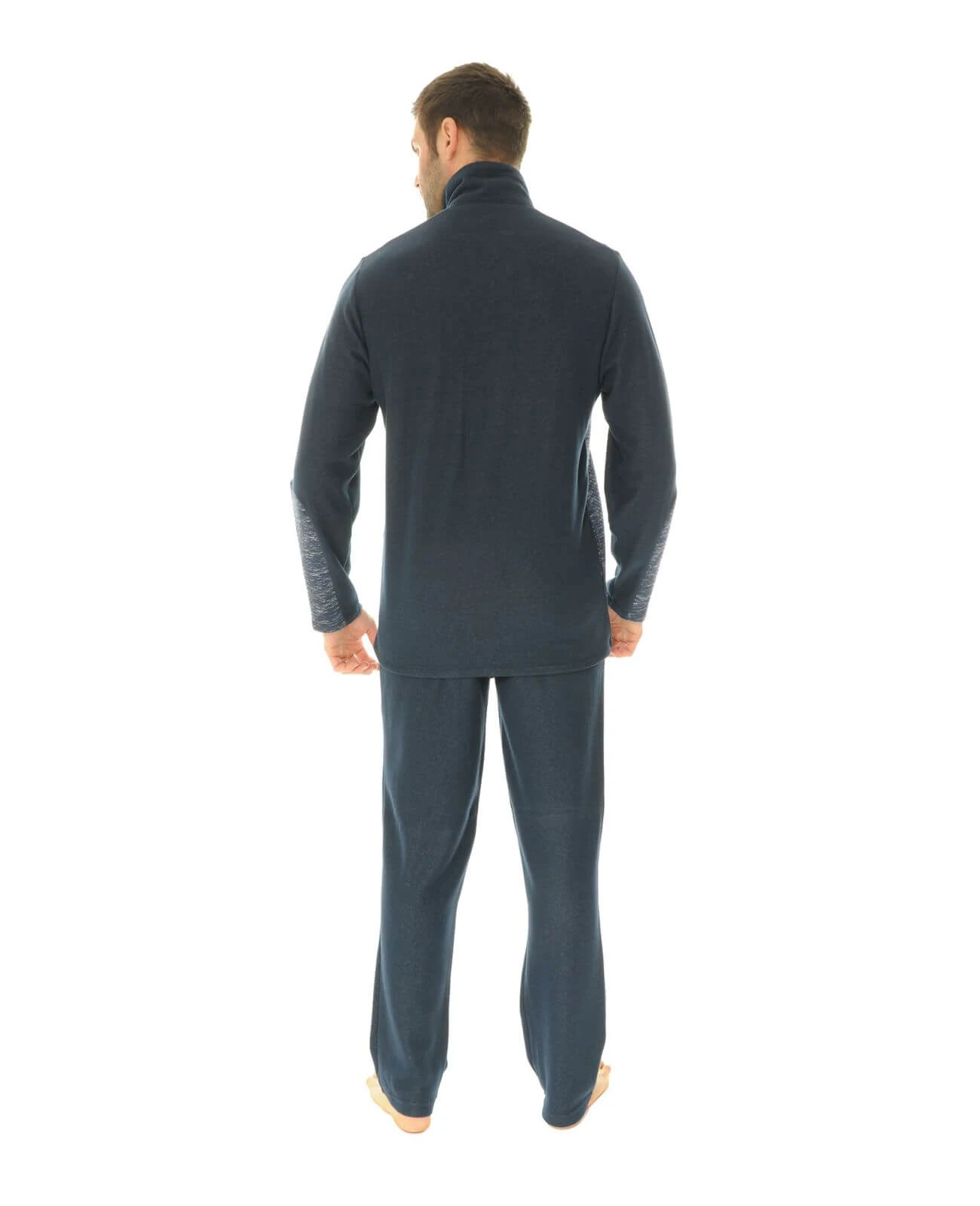 Retrouvez la douceur et la chaleur du molleton polaire associé sur le devant du blouson à un tissu matelassé polaire bleu chiné chaud et moelleux pour un look casual chic.